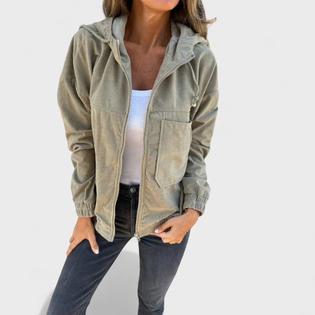 Pavla - Bársony kabát kapucnival és cipzárral