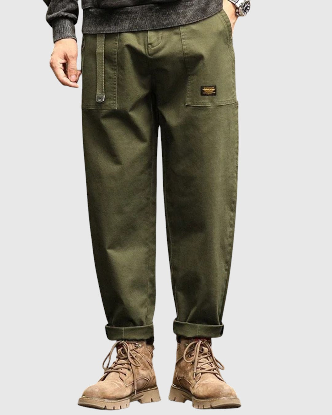 Tartós pamutból készült, egyenes, laza fazonú cargo nadrág, amely ötvözi a stílust és a praktikusságot.