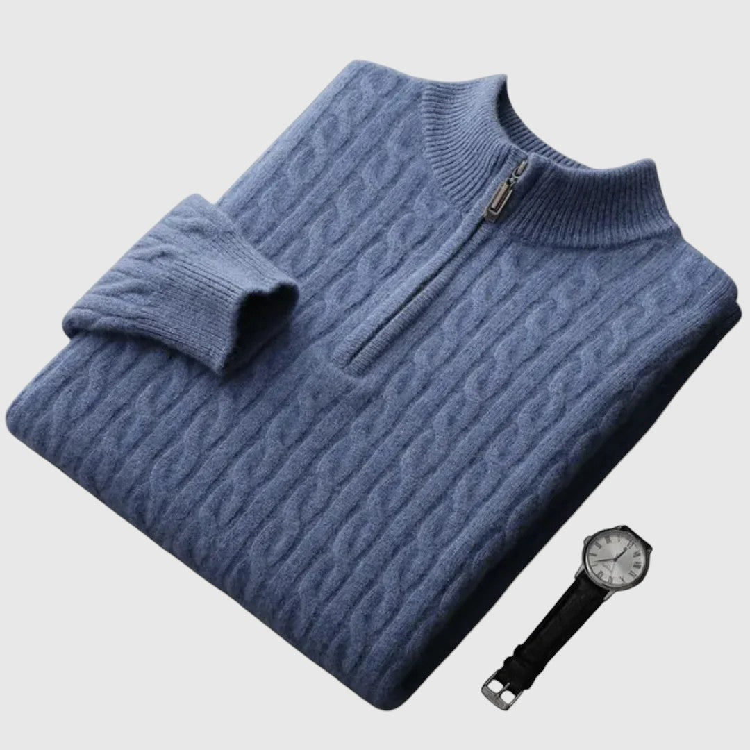 A Deneb Kasmír Woven Fél-Zip pólóing férfiak számára készült, akik értékelik a kifinomult luxust és a mindennapi kényelmet. 100% tiszta kasmírból készült, ez a pólóing ultra puha érzést kínál elegáns és strukturált szabással - ideális rétegezéshez, üzleti casual öltözködéshez vagy laza eleganciához.