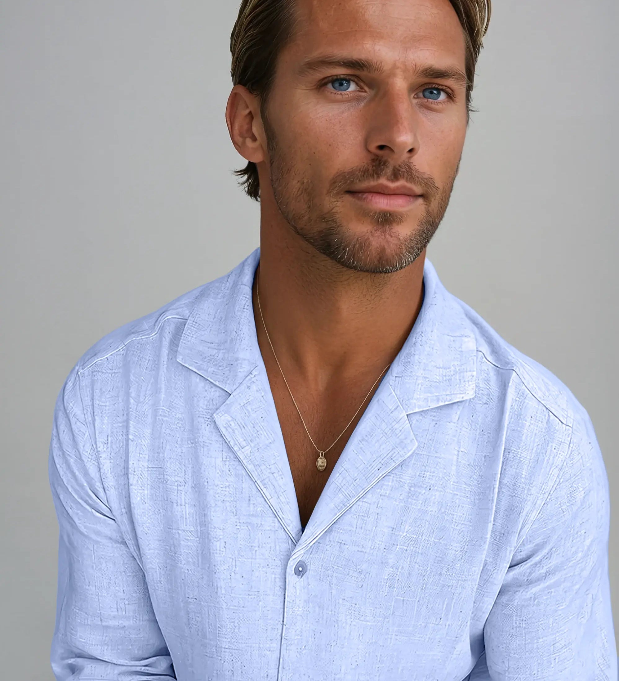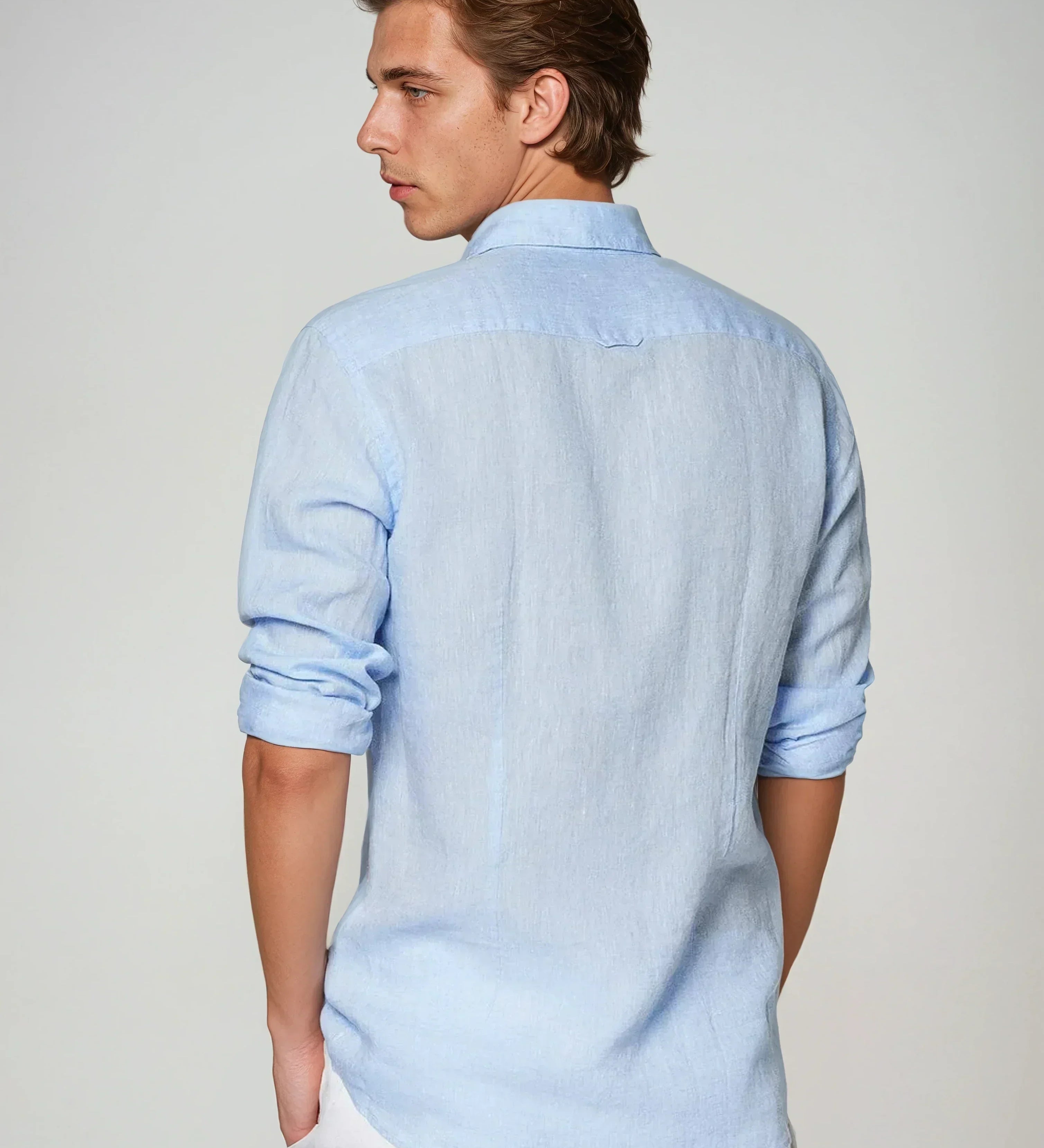 Világoskék lenvászon ing álló gallérral