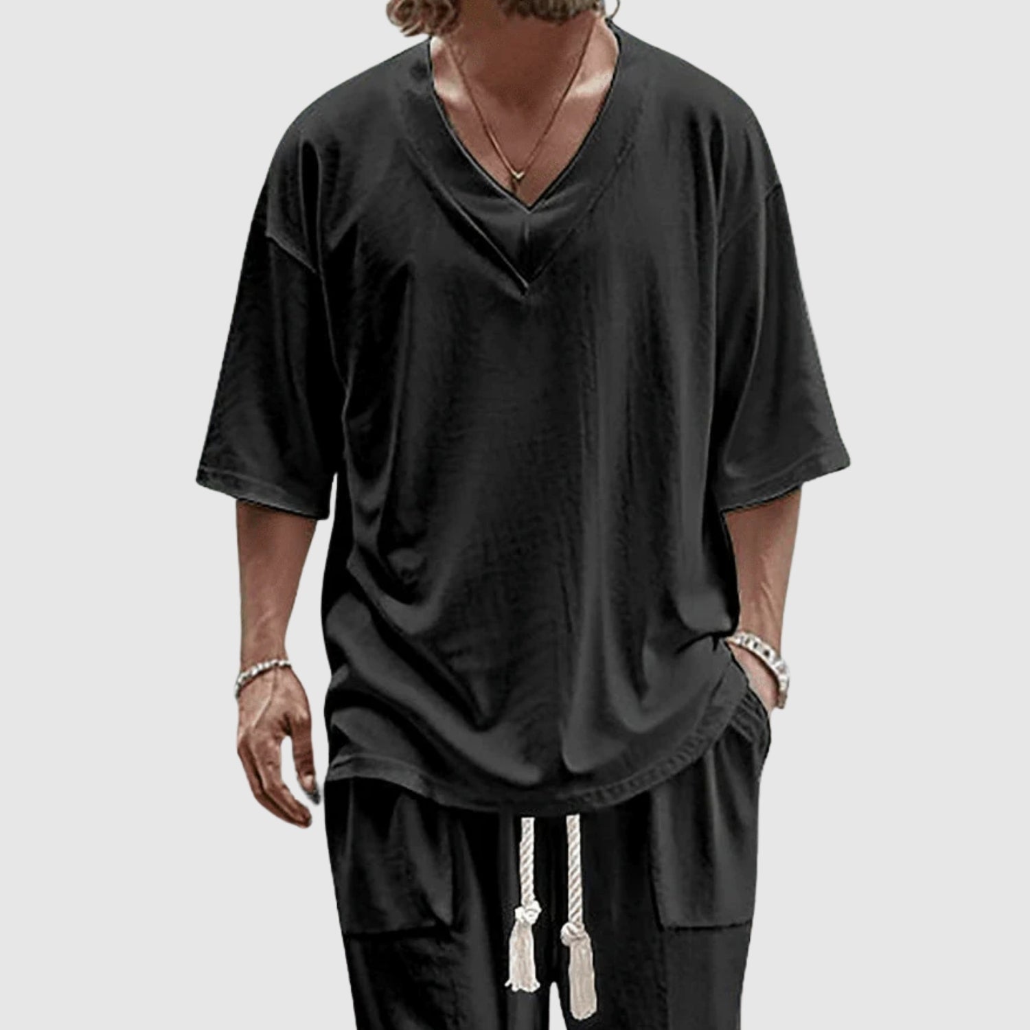 Sebestyén – V-nyakú ribana póló