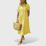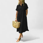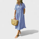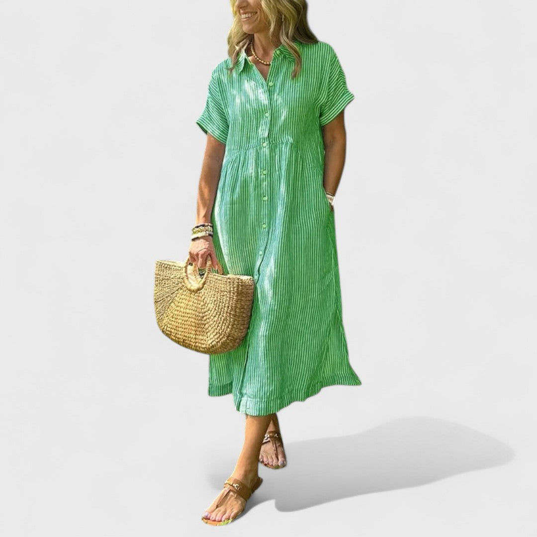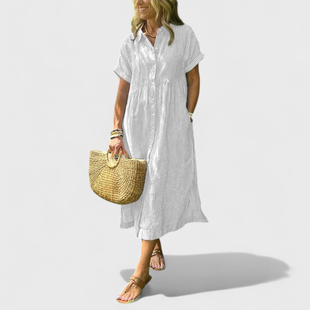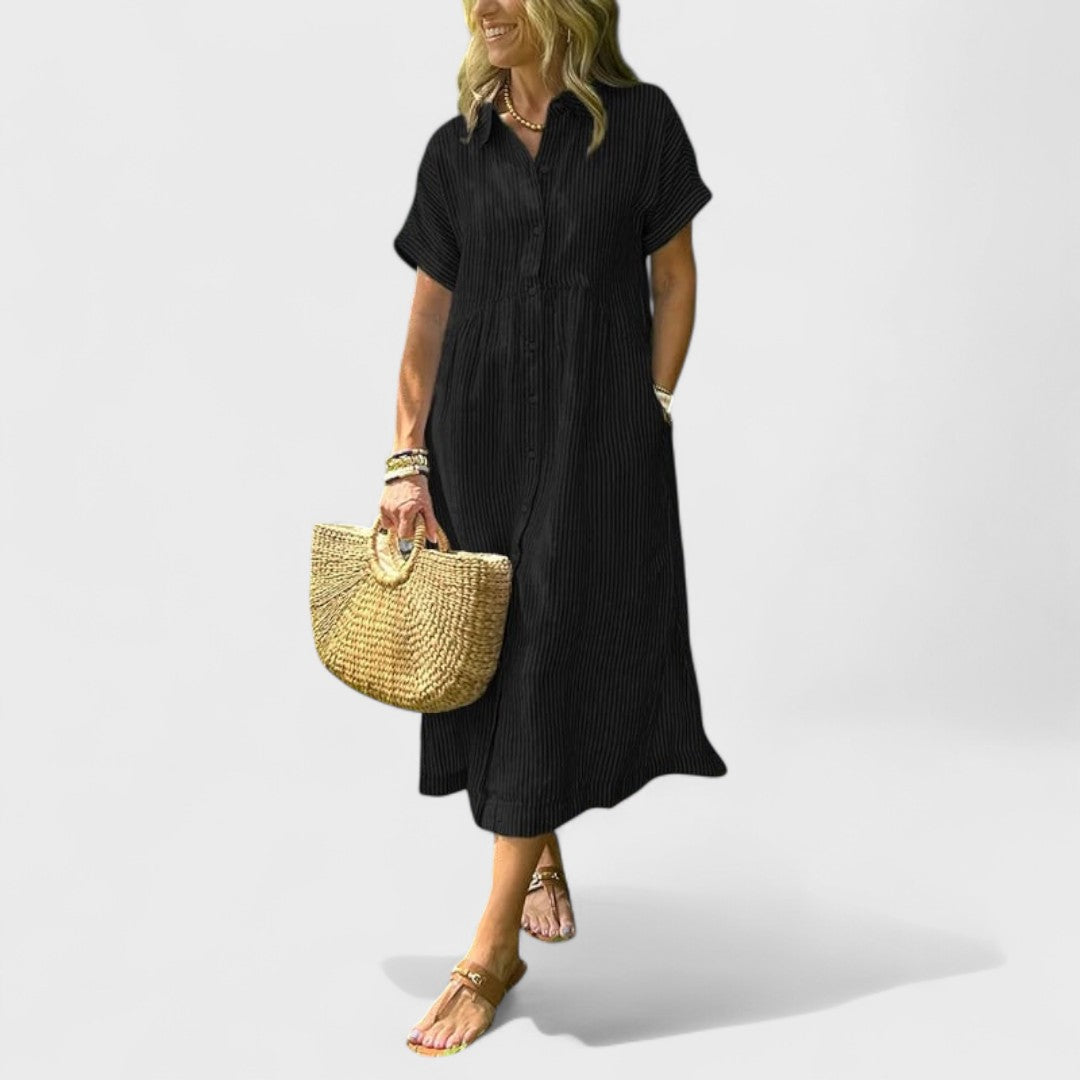 Az Angela ruha hosszabb hosszal és örök szabással rendelkezik, amely szépen kiemeli a derekat és simán omlik a test köré. Puha, lélegző anyagból készült, így ideális forró nyári napokra, romantikus estékre és ünnepi pillanatokra a városban.