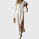 Legyen szó karácsonyi vacsoráról, ünnepi összejövetelről vagy egy nyugodt estéről egy pohár bor mellett, ez a ruha különlegessé teszi az ünnepi pillanatokat.