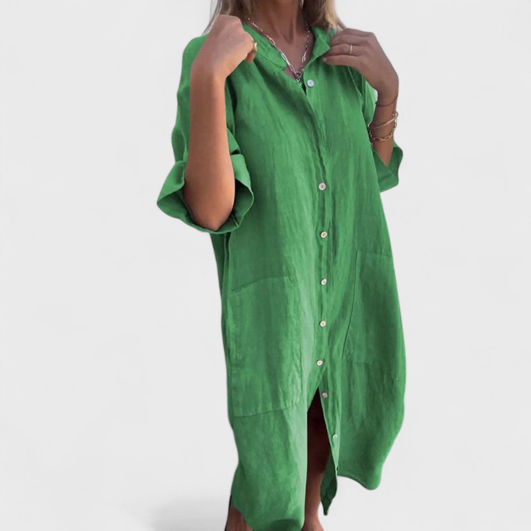 A Petra ruha azoknak a napoknak készült, amikor elegánsnak szeretnél tűnni, de ugyanakkor szabadnak is szeretnéd érezni magad. Könnyű kialakítása, amelyet az ibizai stílus ihletett, szabadon omlik a test köré, és csodás érzést biztosít még magas hőmérsékleten is. A térdig érő hossz optimális kombinációját kínálja a kényelemnek és a stílusnak.