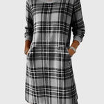 Az Eloise ruha a puha, meleg sweatshirt-anyag kényelmét ötvözi az időtálló kockás mintával, így egy laza, mégis igényes sziluettet teremt. Tökéletes hűvös reggelekre, hétköznapi programokra vagy otthoni, meghitt délutánokra — ideális egyensúlyt kínál kényelem, melegség és természetes elegancia között.