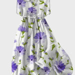 Fedezze fel a tavasz varázsát elegáns maxi ruháinkkal! Ezek a ruhák fehér alappal és lila virágokkal frissességet és nőiességet sugároznak, ideálisak a tavaszi és nyári outfitekhez.